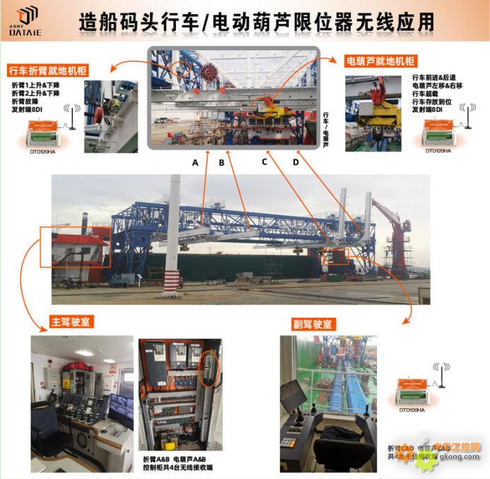 達(dá)泰無線遠(yuǎn)程io模塊在碼頭鋼架結(jié)構(gòu)環(huán)境中仍保持高可靠性。例如在江蘇海新船務(wù)重工的行車無線控制系統(tǒng)中,使用8套DTD120HA完成4組行車與駕駛室的開關(guān)量信號傳輸,提升作業(yè)an quan 性。